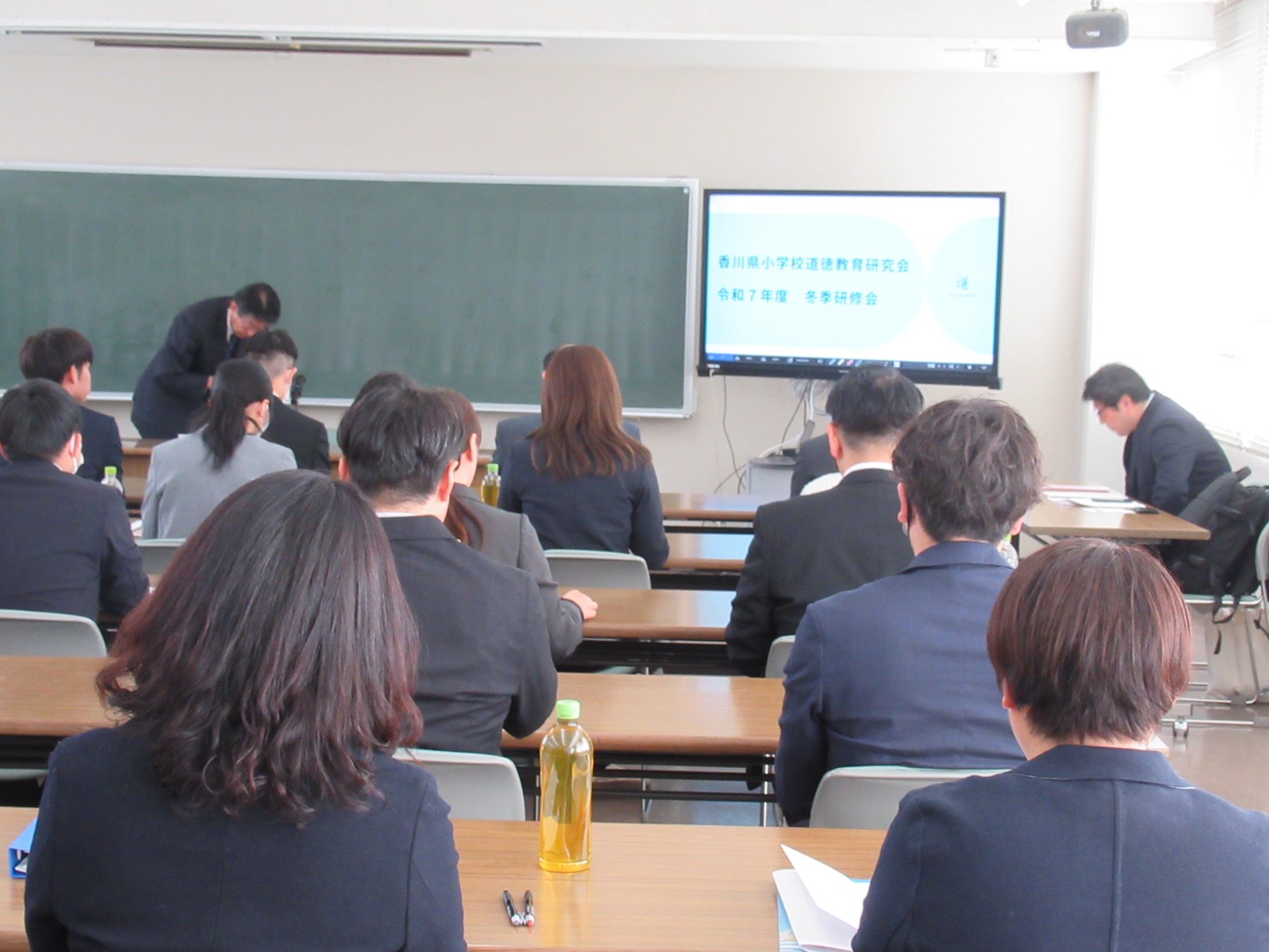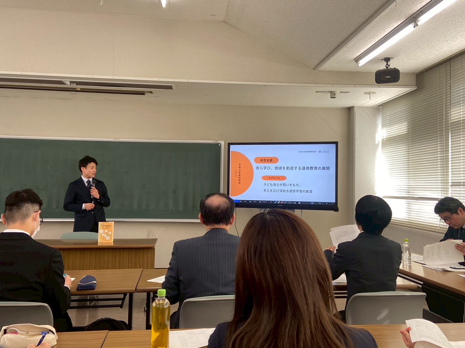 後半は、公益財団法人上廣倫理財団より上田博次先生をお招きし、「昭和40年代の道徳実践に学ぶ」と題してご講演いただきました。 井上治郎先生と青木孝頼先生の理論に基づいた「道徳授業の在り方」を学ぶ、貴重な機会となりました。