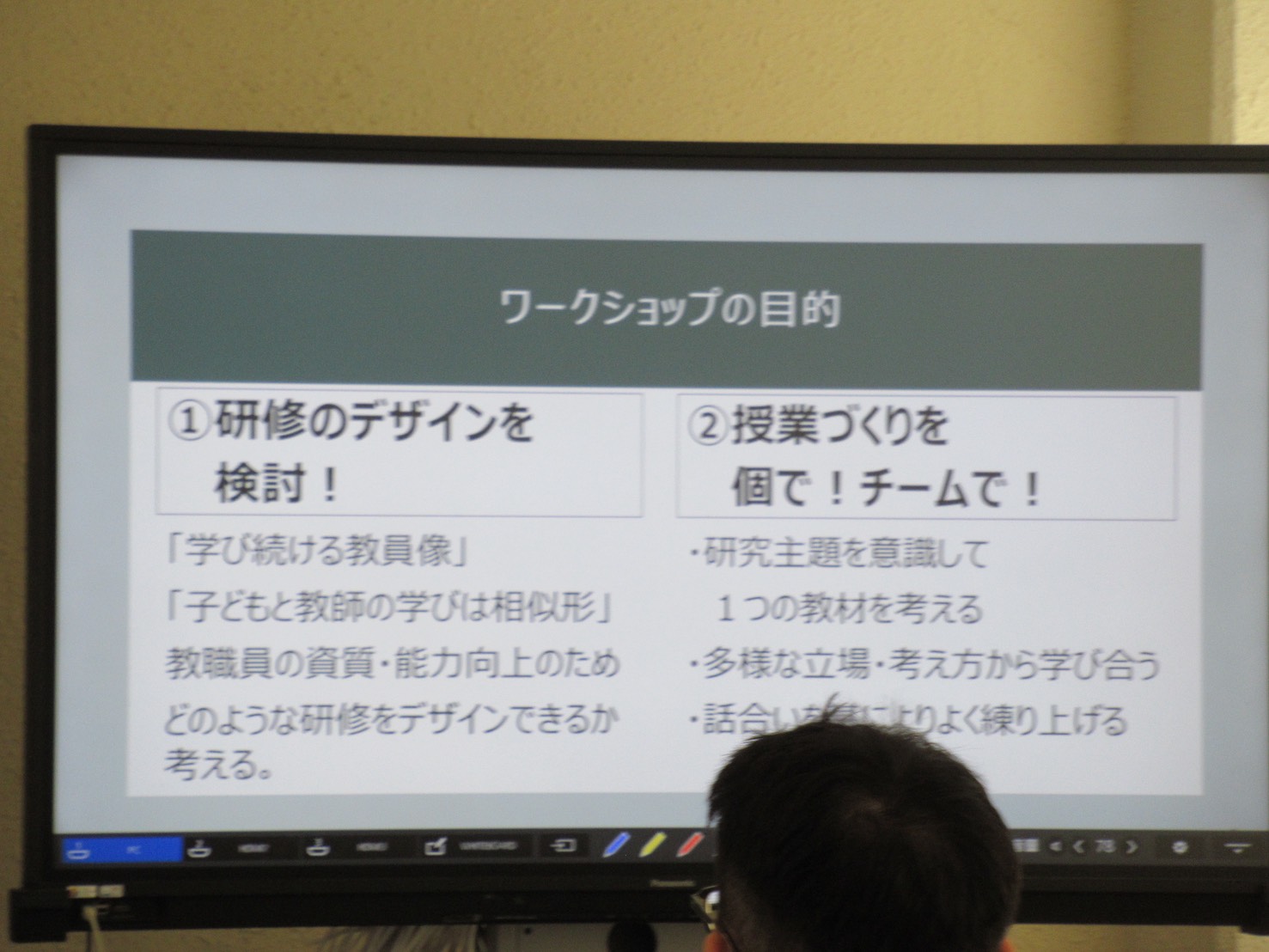 前半は、昨年度に引き続き、会員の皆様の投票で選ばれた有名教材を用いたワークショップを実施。本年度は「子どもと教師の学びは相似形」という視点に立ち、教職員の資質・能力向上に向けた「研修デザインを考えること」も 目的の一つとしました。